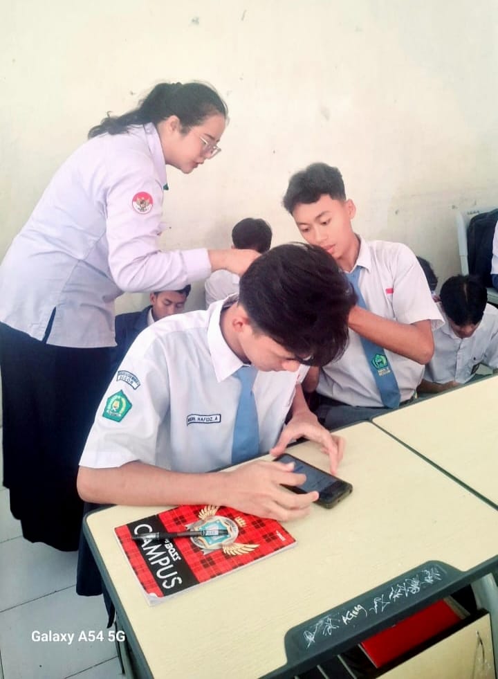 Keterangan Gambar : Ketua Tim PTN Mendampingi Peserta Didik Kelas XII.A Dalam Proses Pembuatan Akun. (19/1/2026)