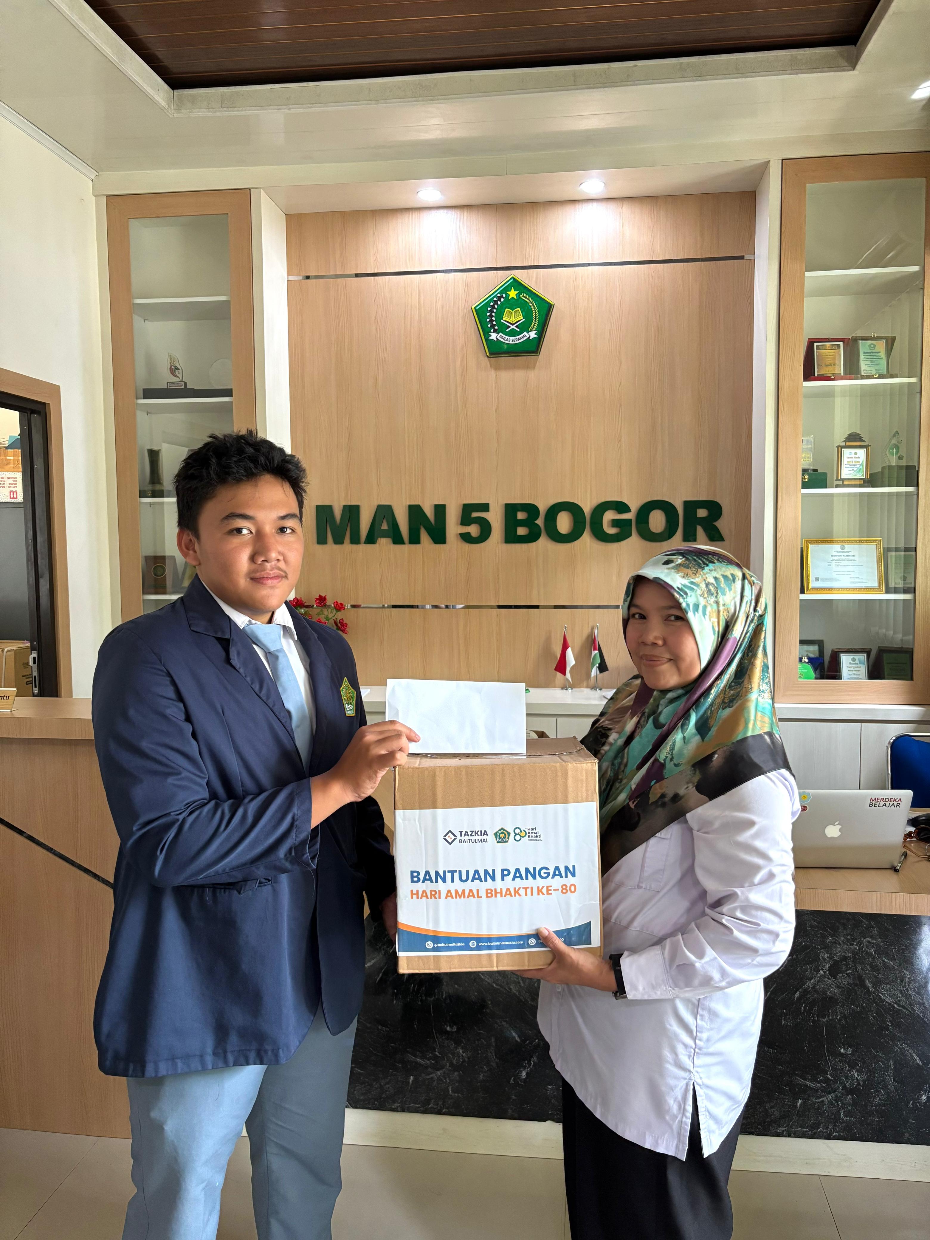 Parung Panjang – Dalam rangka memperingati Hari Amal Bhakti (HAB) ke-80 Kementerian Agama Republik Indonesia, MAN 5 Bogor menyalurkan bantuan pangan dari Kementerian Agama Kabupaten Bogor kepada lima orang siswa. Kegiatan ini dilaksanakan di lobi kantor MAN 5 Bogor pada Senin (26/1/2026).
