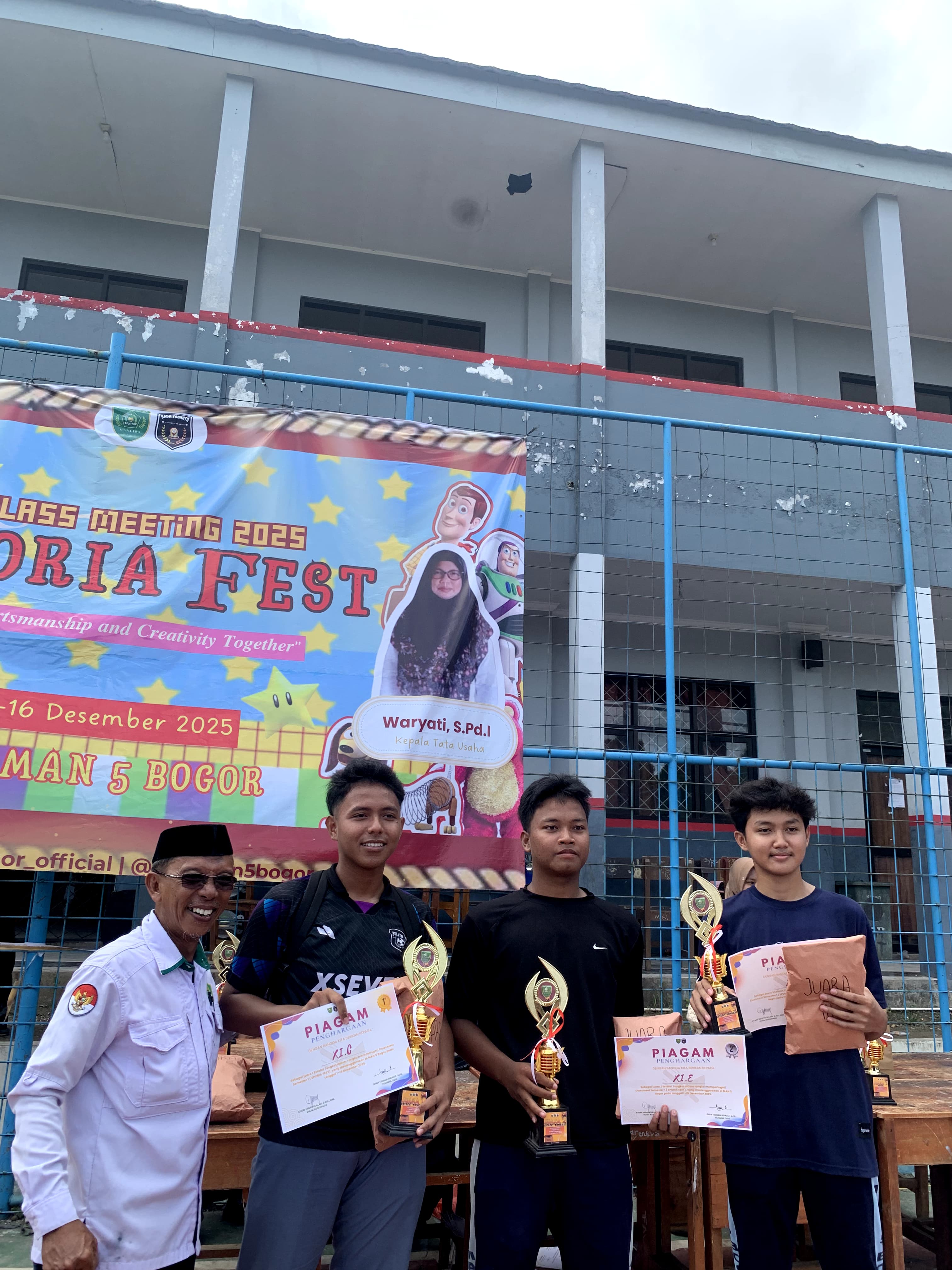 Parung Panjang, 16 Desember 2025-MAN 5 Bogor menutup rangkaian kegiatan CLASSMEET (SPORIA FEST) Semester 1 dengan pembagian hadiah kepada para pemenang perlombaan pada Selasa, 16 Desember 2025.