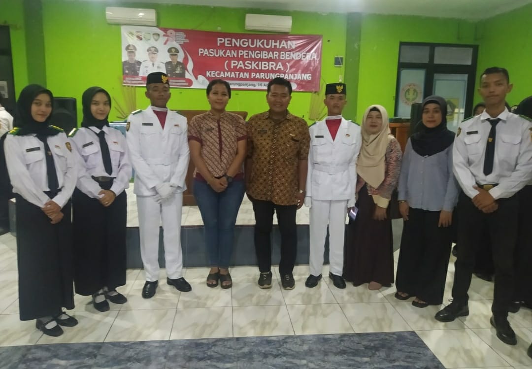 PENGUKUHAN ANGGOTA PASKIBRAKA KECAMATAN PARUNGPANJANG: MUDA, BERSEMANGAT, SIAP MENGIBARKAN PANJI KEB