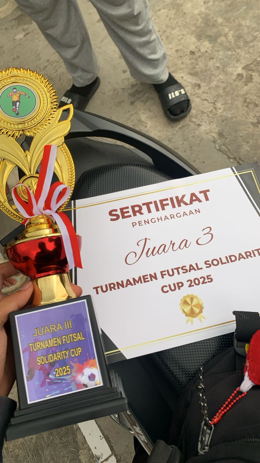 Penghargaan diserahkan kepada Choirusyahriddin, perwakilan tim futsal MAN 5 Bogor, yang mewakili rekan-rekannya dalam menerima piala dan sertifikat penghargaan.